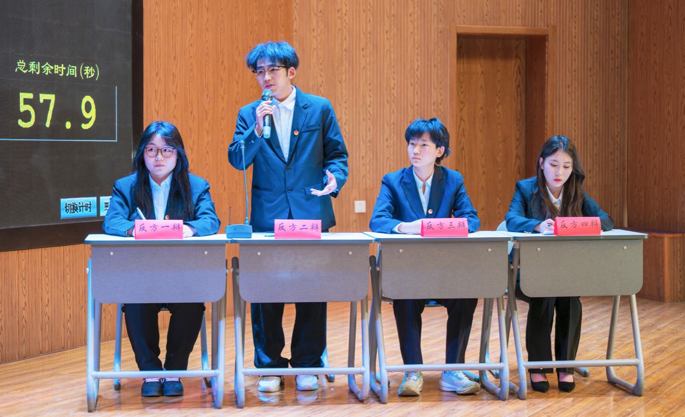 活动伊始,全体师生肃立,齐唱中华人民共和国国歌与中国共产主义青年团团歌,庄重的仪式为本次决赛拉开序幕。主持人随后简要说明活动举办背景及赛程规则。赵星娜老师致开幕词,寄语辩手们以辩会友、以论明道,在唇枪舌剑中展现青年学子的逻辑锋芒,在思想碰撞中拓宽视野、共同成长。