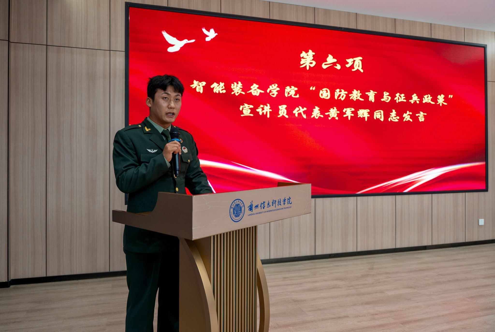为进一步加强应征入伍政策宣传力度,学院特别聘任7名退伍学生为“国防教育与征兵政策”宣讲员。宣讲员代表黄军辉同学结合自身入伍经历,分享了在军营中的成长收获,用真实故事为在场同学展现了军营魅力。同时,智能装备学院就业副主任姚XX老师详细介绍了退伍学生在复学、就业等方面的优待政策与支持措施,从学业衔接、职业发展等多个维度为退伍学生未来规划提供了清晰指引。