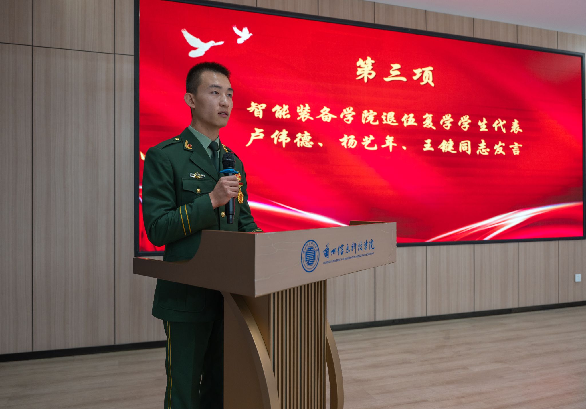 仪式上,学院党委组织委员苗国涛老师向退伍学生表达诚挚欢迎与充分肯定。退伍学生代表分享了军旅生涯的成长与感悟,展现出军人坚韧不拔、勇于担当的精神风貌。