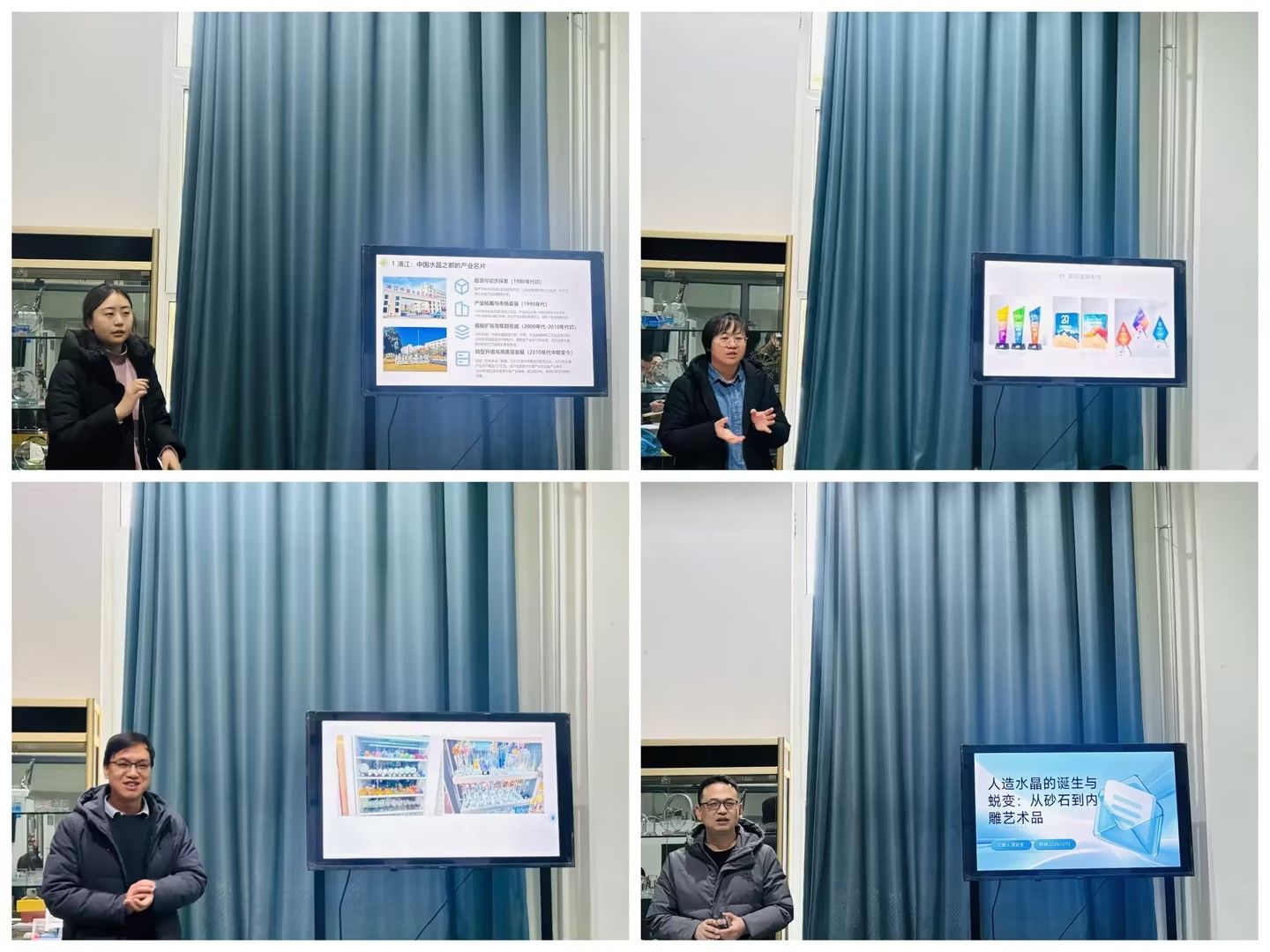 本次转训聚焦“从市场到制造:奖杯礼品产业全链条技术解析与教学启示”,以专题报告、案例剖析、实物展示相结合的形式,构建起从产业认知到教学转化的完整闭环。转训内容围绕三大模块层层推进:市场前沿解析,依托义乌商贸城的深度调研,精准捕捉产品趋势与定制需求;核心工艺与设备实勘,深入激光内雕、UV喷绘等关键技术细节,对比材质工艺差异;数字化设计链贯通,呈现从软件设计到智能生产的全链路技能图谱。四位挂职教师通过影像、数据和实物样品,生动还原产业现场,更分享了“精益生产”“客户导向设计”等前沿行业思维的切身感悟。