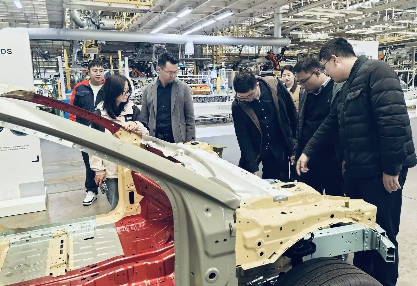 在基地相关负责人的陪同下,教师团队深入冲压、焊装、总装等现代化制造核心环节,实地考察智能制造工艺、数字化生产管理系统与精益质量控制体系。通过近距离接触智能装备与工业物联网的应用场景,教师们对制造业前沿技术转化与生产管理优化有了更深刻的认识,为重构“基于真实情境”的课程体系与教学案例提供了实践支撑。