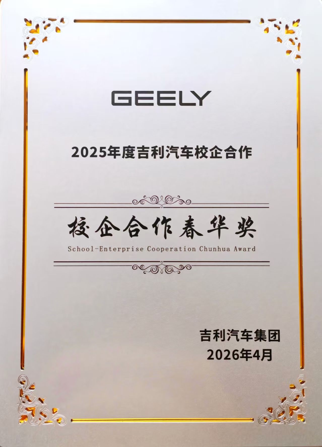 为总结合作成果,共谋发展新篇,4月21日,2026年吉利汽车全国校企合作峰会顺利举行。兰州信息科技学院智能装备学院作为重要合作伙伴受邀出席本次盛会,并凭借过去一年在校企协同育人方面的突出贡献,被授予“2025年度吉利汽车校企合作春华奖”。这一荣誉是对学校在应用型人才培养和产教深度融合方面工作的充分肯定。